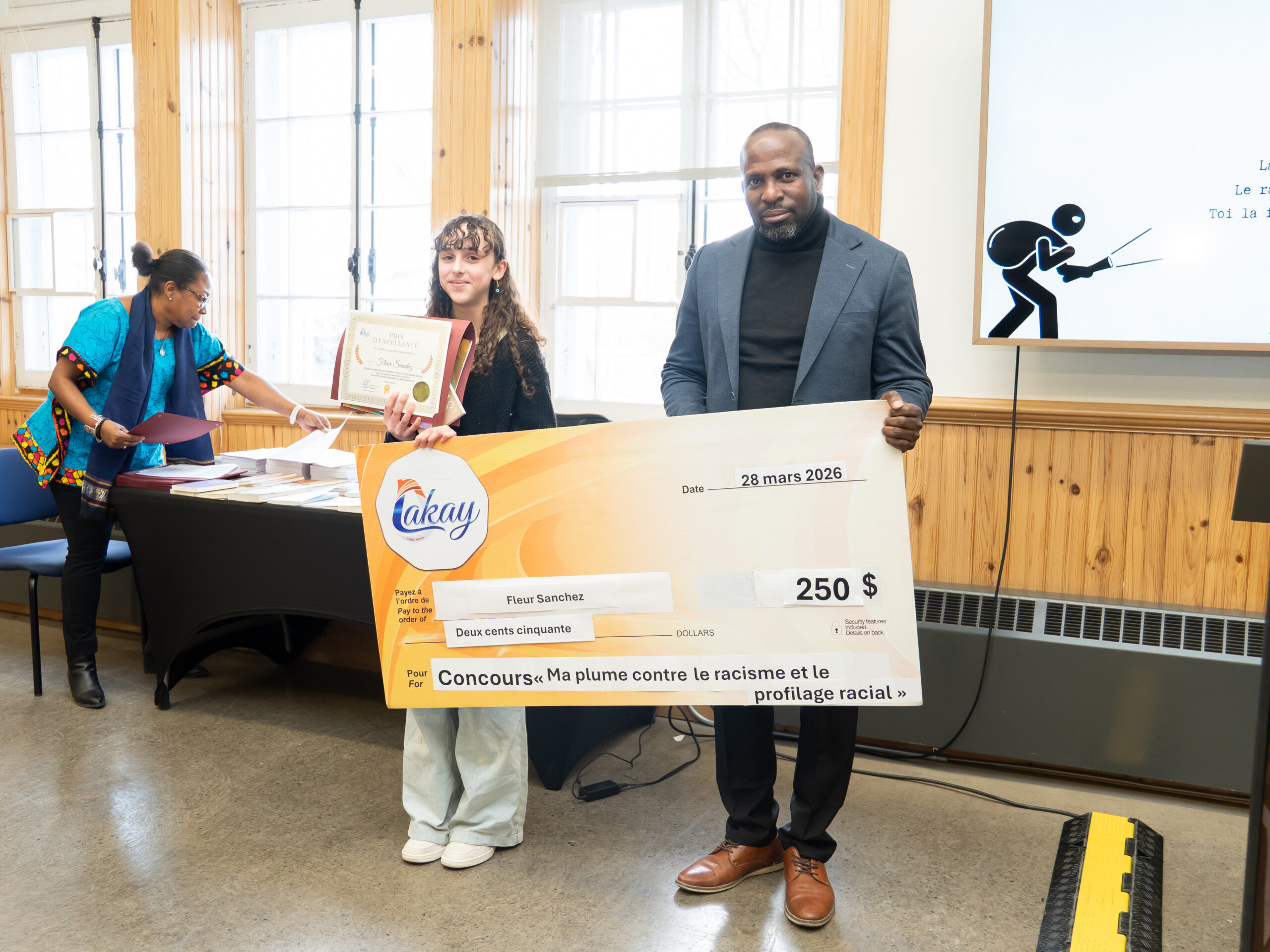 Découvrez quelques images de la 4e édition du concours Ma plume contre le racisme et le profilage racial, présentée au Collège de l’Assomption le 28 mars 2026. Cette galerie met en lumière les moments marquants de la cérémonie et l’engagement des participantes et participants.